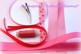 Dois segmentos de largura da fita de 25 mm de comprimento, 22 cm (aqui, rosa e magenta).