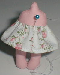 Puxe o fio do alinhavo na medida do corpo da boneca, arremate.