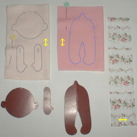 Depois de copiar o molde passe o risco para o tecido, corte, 4 vezes para os braços, 2 vezes cabeça,2 vezes corpo.