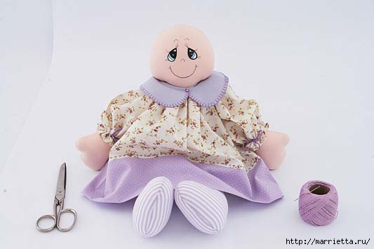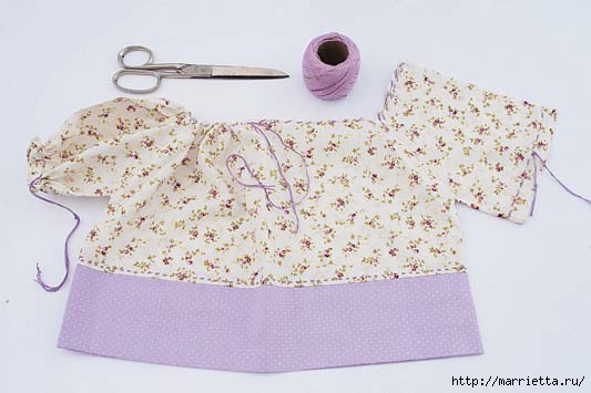 Vista o vestido na boneca, amarre os fios num laço, aplique a gola