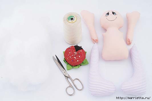 Costure braços, corpo e pernas e depois de colocar os plumantes, passe uma costura simples à máquina de costura para fechar as extremidades