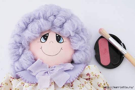 Para finalizar, com o pincel brocha e o blush, pinte as têmporas da boneca.