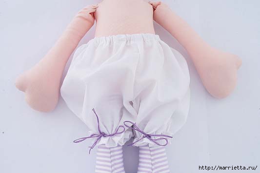 Costure a parte debaixo das pernas com ponto alinhavo iniciando a costura pelo meio e deixe uma sobra de linha