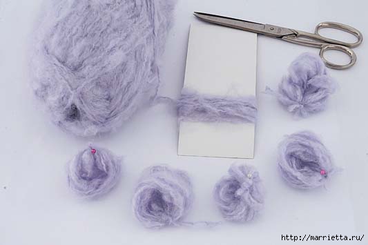 Para fazer o cabelo, enrole a lã em um papelão de 5 cm e dê 15 voltas ao redor. Retire a lã do papelão e, com o próprio fio, amarre o centro do tufo formado. Repita o processo para criar 30 tufos.