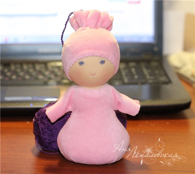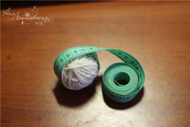 Fica assim como mostra a figura, corte uma meia pequena e use a ponta para ensacar a bola de linha e a lã desfiada