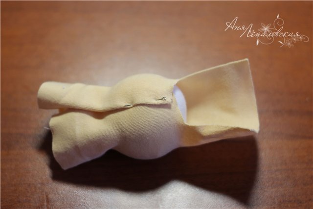 Posicione e costure...a parte mais estreita deve vir por cima da bola maior, para fechar a cabeça