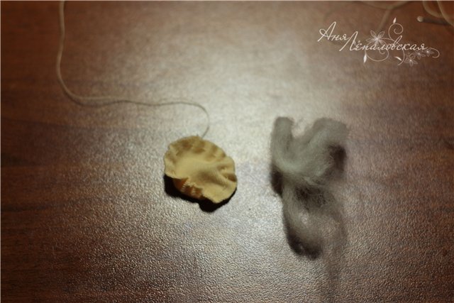 Coloque no meio de 3 tiras de lã desfiada ou similar...