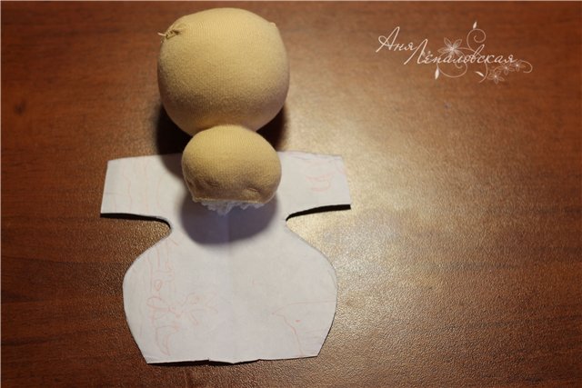 Para o molde do corpo, posicione a cabeça sobre um papel e risque como mostra a imagem