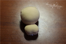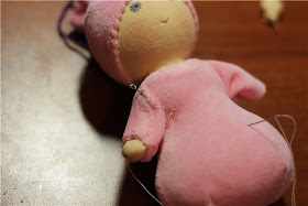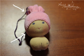 Costure a cabeça, arremate entre as duas bolas e também a parte debaixo