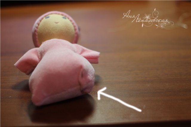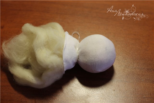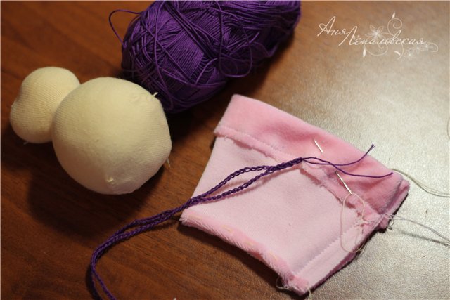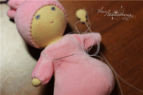 Prenda na boneca sobre a bola menor. Costure...