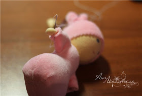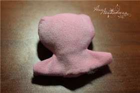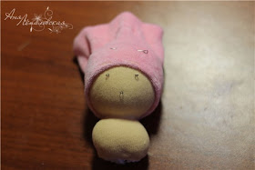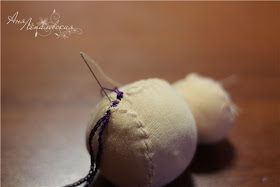 Posicione e costure...a parte mais estreita deve vir por cima da bola maior, para fechar a cabeça