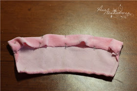 Prenda no alto da cabeça, na parte de trás, sobre a costura e arremate uma alça.