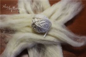 Coloque no meio de 3 tiras de lã desfiada ou similar...