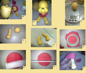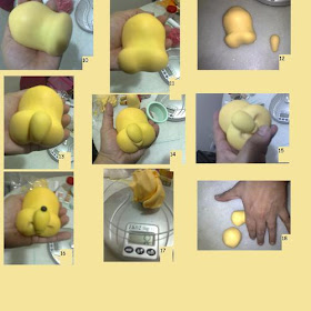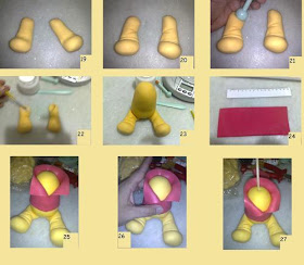 18- Faça duas bolinhas e role do meio para fora, formando as duas perninhas. Faça uma de cada vez.