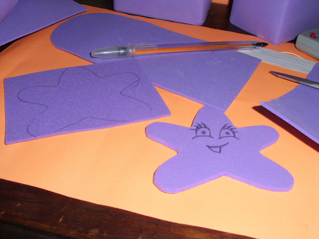 Faça uma estrela de EVA e cole do outro lado da mochila.