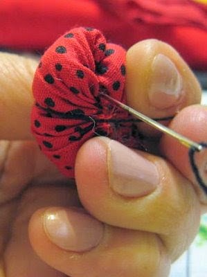 Início da cabeça da joaninha. Observe como é colocada a agulha.