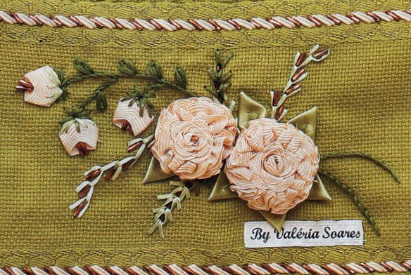 A mesma técnica do bordado com linha pode ser usada para bordado com fitas também.