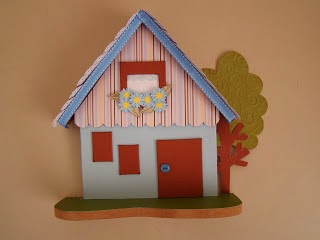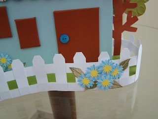 Em seguida o fundo da casinha com cardstock azul.