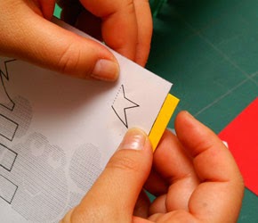 | 4 - Para a capa, marque os cantos, com o mesmo processo da árvore e da estrela. Corte os quatro cantos com gilete. |