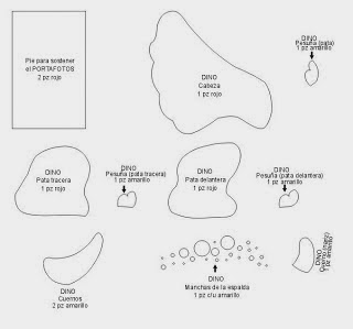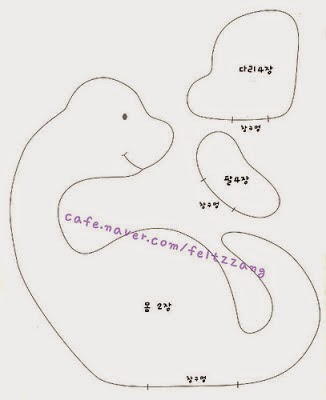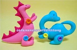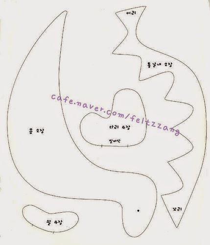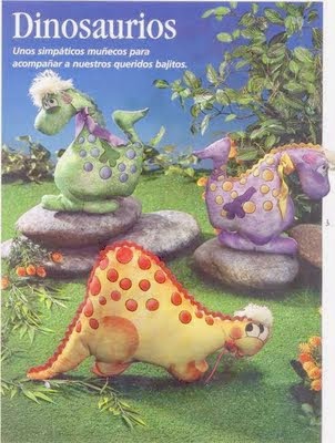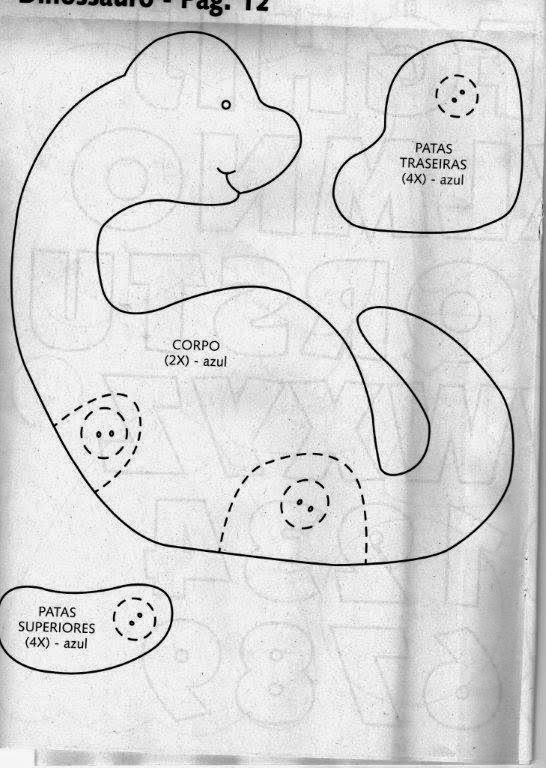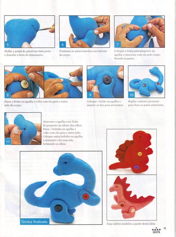 Para fazer um gancho, agulha fio com fios de ouro. Desenhe agulha através da coluna de dinossauro (pelos dois pedaços de feltro), logo abaixo borda azul.
