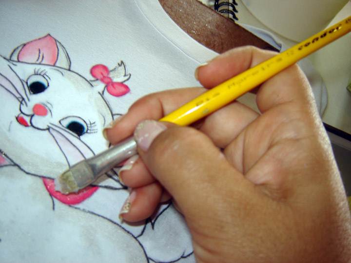 02- Faça uma mistura da tinta branca com o incolor clareador, e aplique por toda a gatinha, exceto nos laços, com o pincel 326-12.