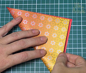 Dobre do mesmo modo a ponta direita, reforçando bem as duas dobras.