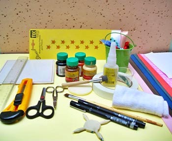 Separe também: Tesoura comum, tesourinha de cortar unhas,estilete, régua, fita crepe e uma caixinha de leite tetrapack