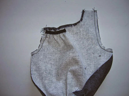 Costure as seções do corpete na frente do corpete de costas pelos ombros