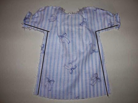 Na área de trabalho, costure uma pequena fita contrastante apenas na costura da bainha e no decote, coloque uma costura ou renda, conforme desejado