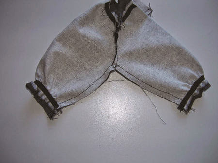 Franzir as cabeças da manga entre os pontos para ajustá-los no jugo do vestido