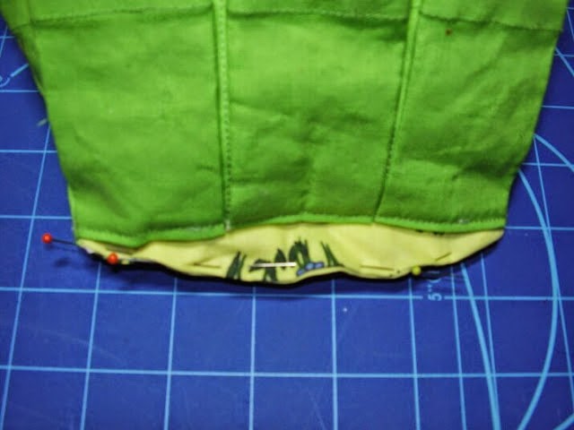 Coloque as abas de ponta a ponta com os bolsos e costure-as até o fim