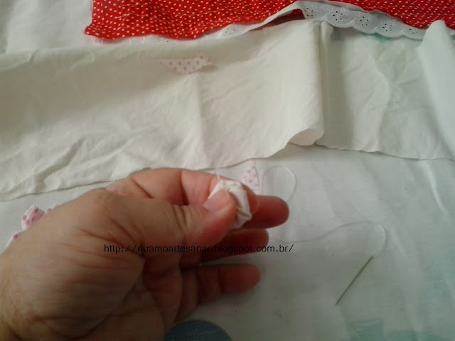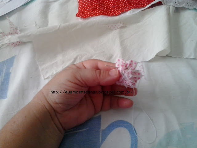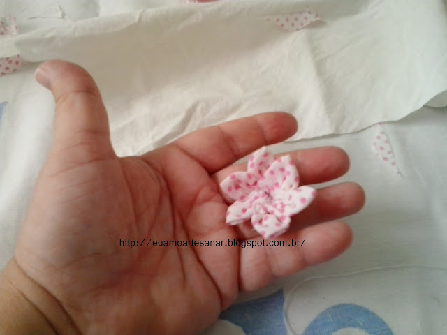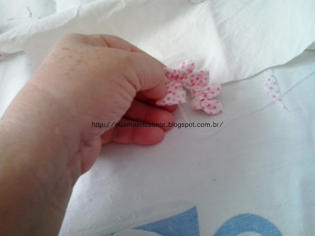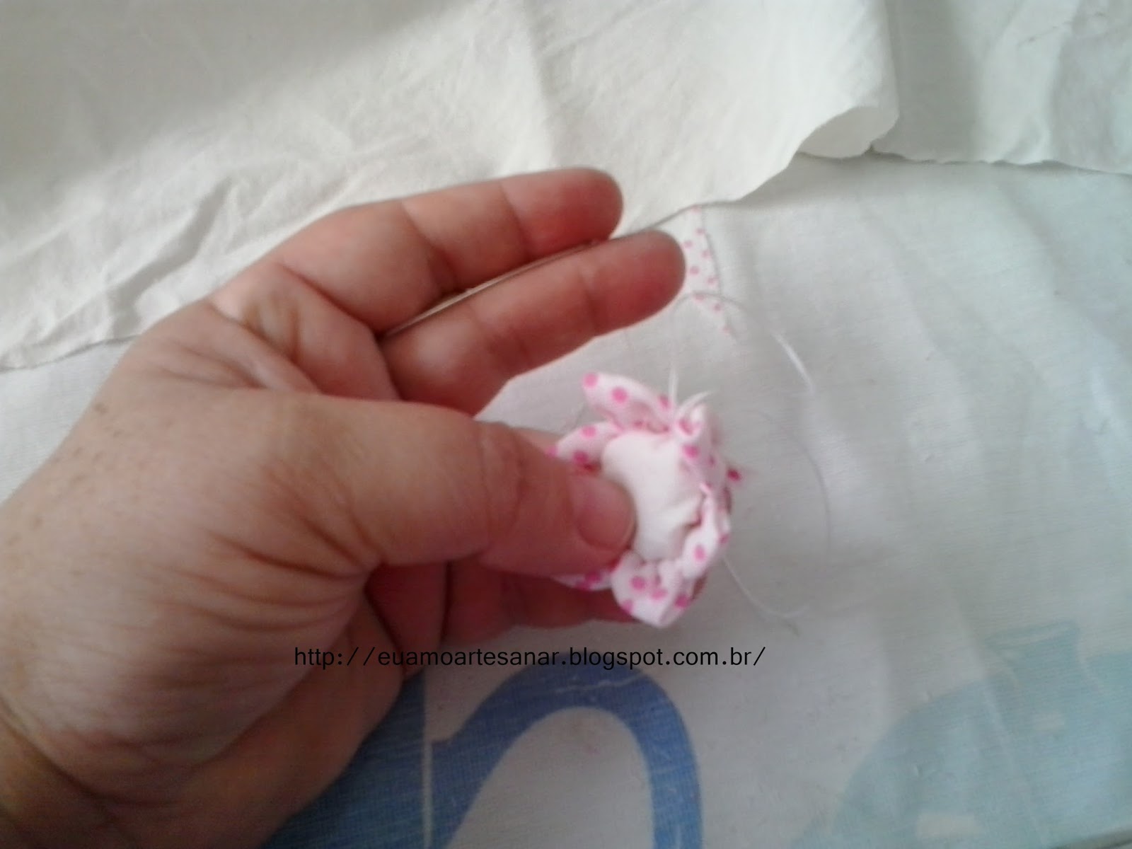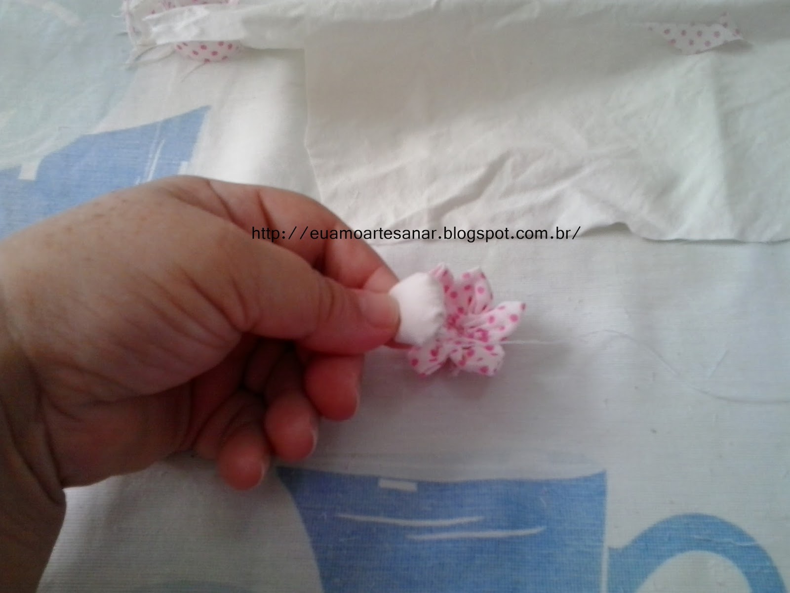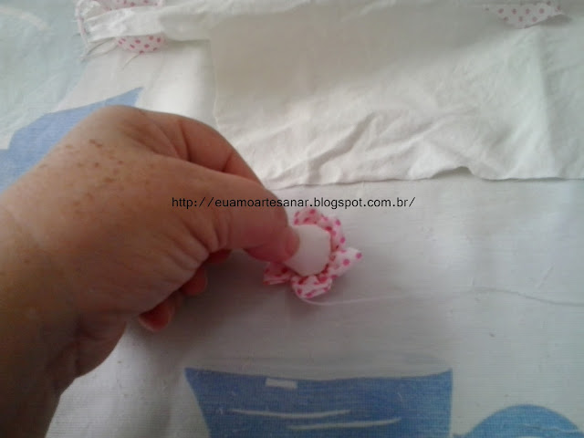 Aperte o meio do fuxico para ajeitar(imagem abaixo).