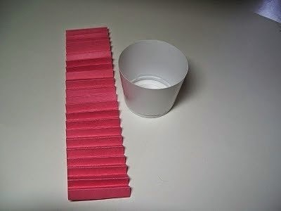 6 – Depois de cortá-lo em fileiras, dobre-o um a um e cole do lado de fora do rolo.