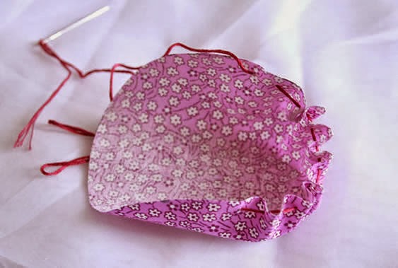 1. Alinhave toda a volta dos círculos de tecido como mostra a foto abaixo;