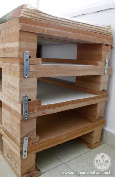 Papelão, tecidos de 3 estampas diferentes, cola branca, pincel, cavilha de madeira para fazer o puleiro, arame para fazer o gancho e cola quente.