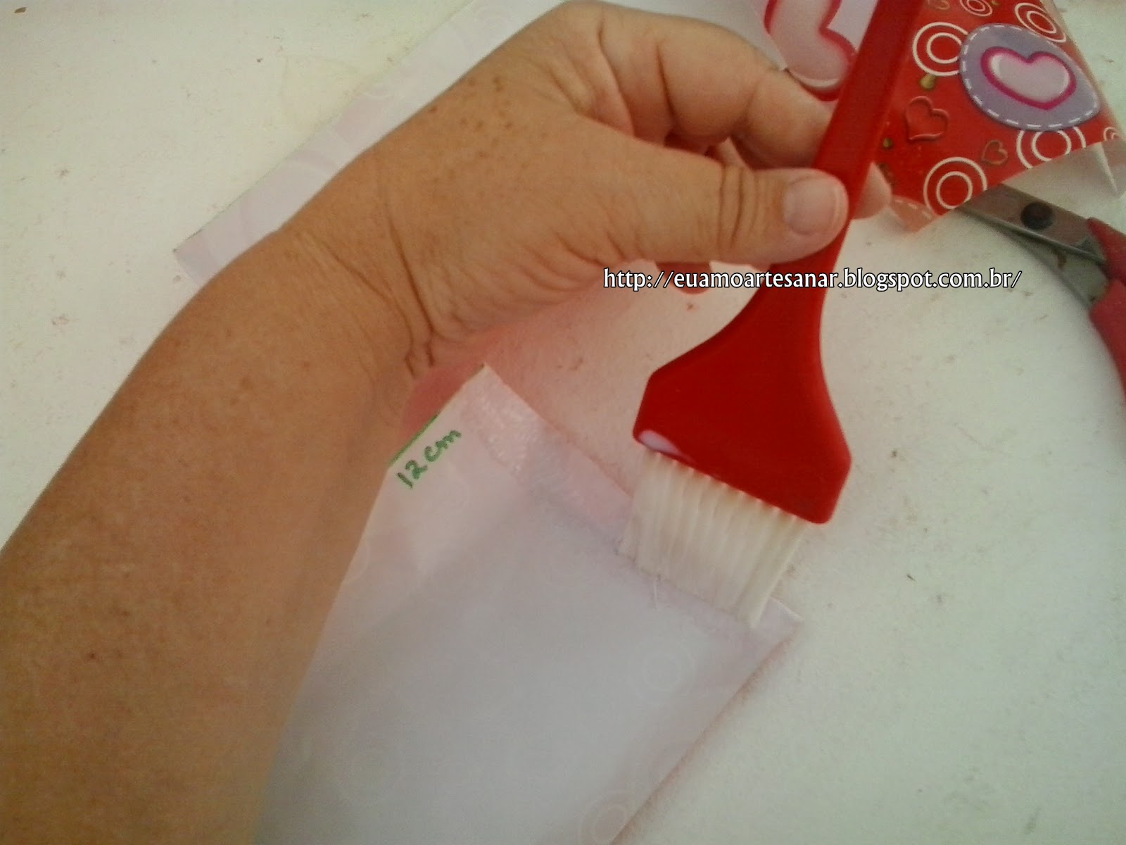Vai colando aos poucos, a dobra dos 2cm é para baixo. Ficou assim