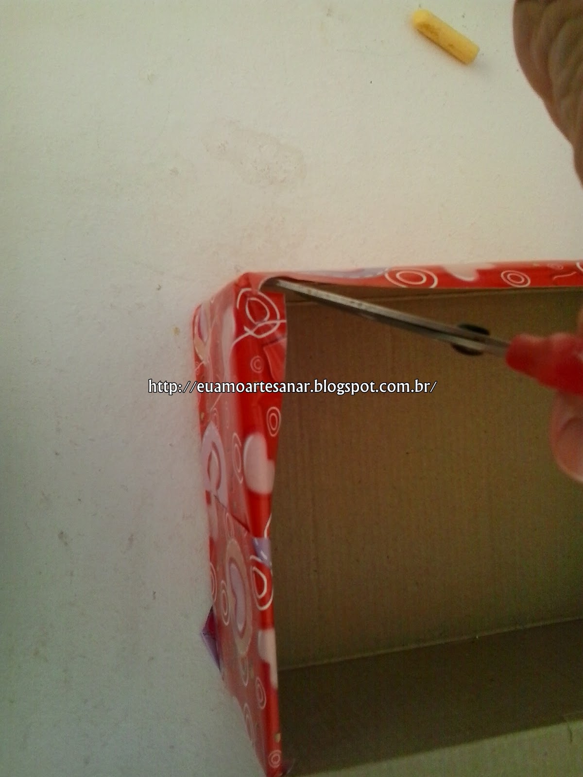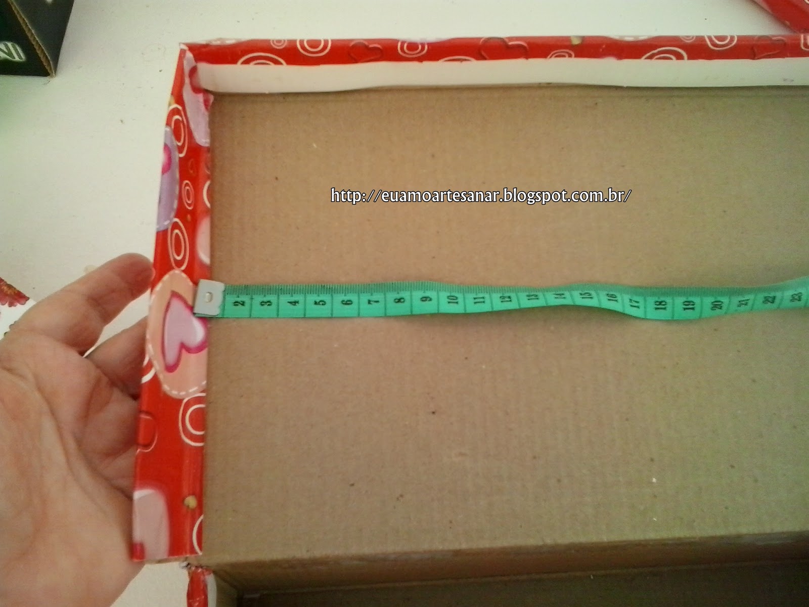 Meça a tampa da caixa: a altura deixando 2cm só embaixoE a largura deixando 2cm dos dois lados