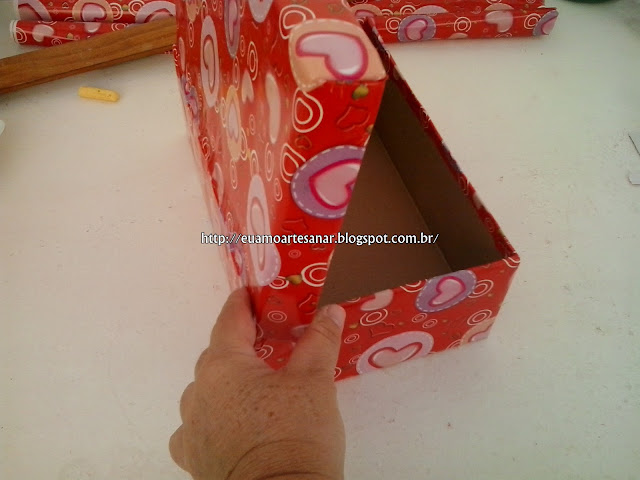 Pedia aqui, pedia ali para os conhecidos e nada de conseguir, mas Deus sabe e conhece sempre as nossas necessidades, tanto as grandes, como as mais pequeninas, como a minha pelas caixas, e um certo dia estava eu e minha irmã Regina dando umas voltas e colocando a conversa em dia, quando avisto uma montanha de caixas de sapato novinhas, lindas me esperando. Pegamos todas e já fazem dois dias que estou encapando para usar na organização do meu cantinho de artesanato, e nada mais justo do que colocar o passo a passo, por agradecimento pela benção recebida. É legal usar caixas porque é algo barato e rápido de fazer e a organização é garantida!