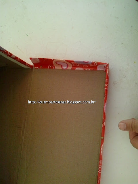 Emendei o papel na largura(a largura da minha caixa deu 99cm), cortei com 2cm a mais para fazer o acabamento