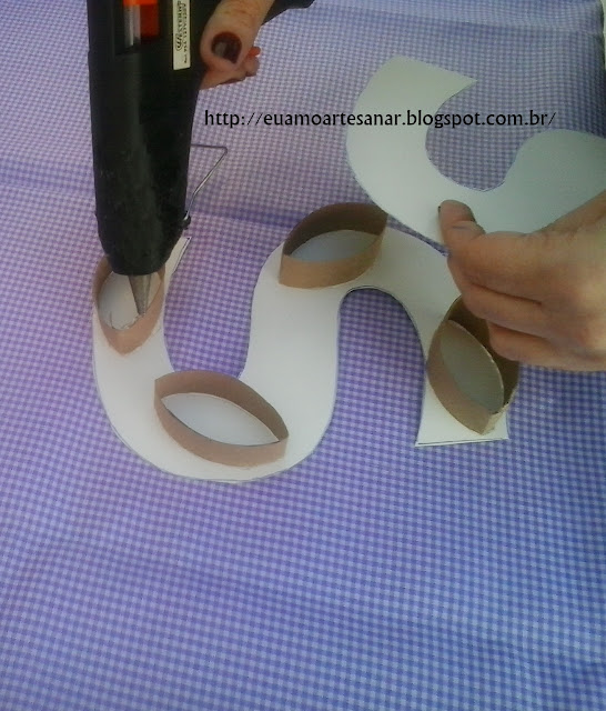 Passe cola quente aos poucos sobre a letra e vai colando a letra de eva