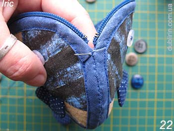 19. Aqui está o nosso "peixe" ao costurar zíperes. Enquanto ele não sai.