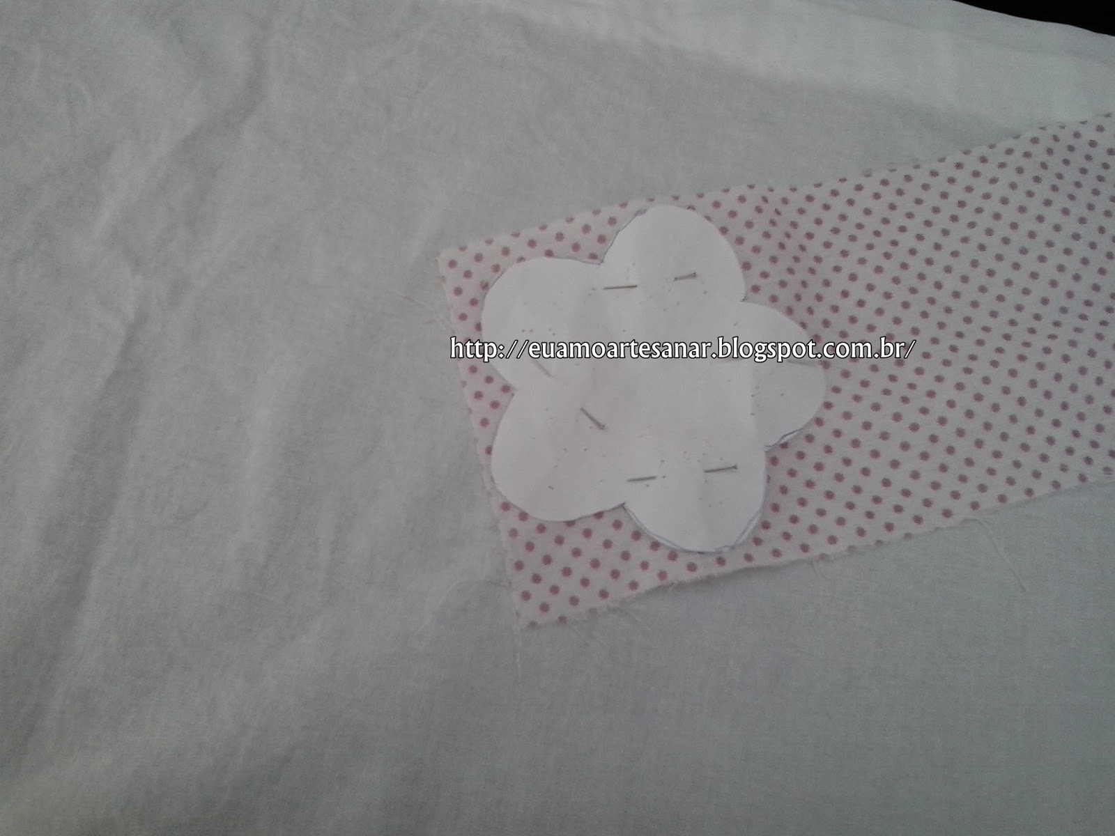 Agora é a hora de casear todas as flores, se quiser pode colar as flores com papel termocolante, fica bem mais fácil para depois casear, eu não uso, faço direto, somente com o alfinete segurando.