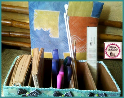 Recorte as tampas das caixas e junte- as com fita adesivaFoi utilizado o papel de pão e cola branca para unir as partes internas