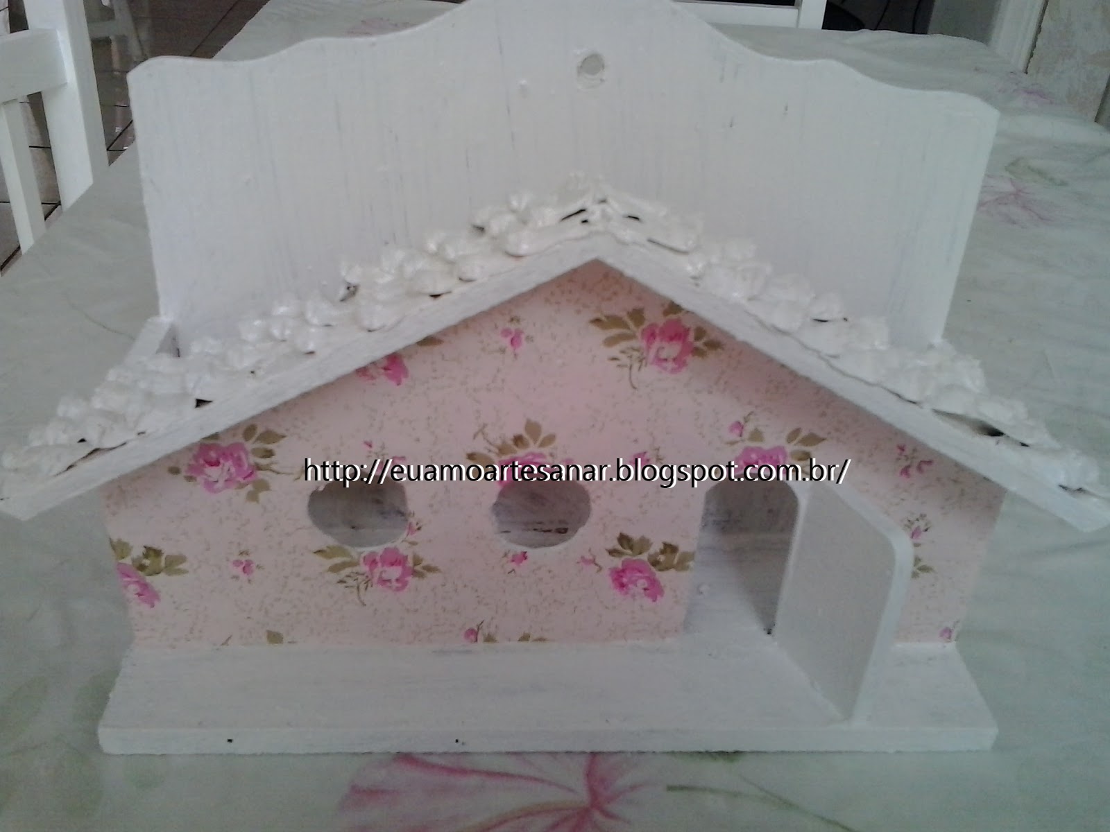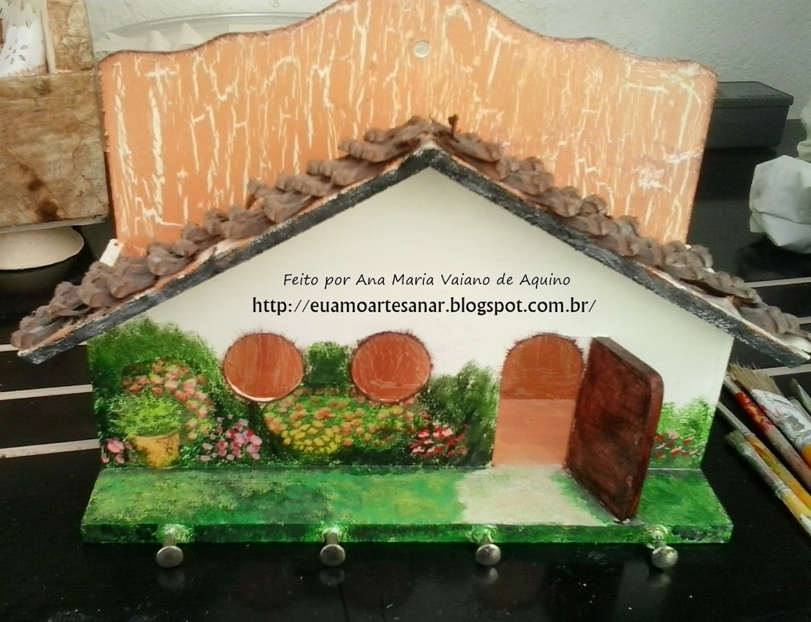 Estava com esta casinha porta chaves que não combinava em nada com a decoração vintage, que estou tentando implantar em minha casa, então resolvi mudar completamente a decoração da casinha
