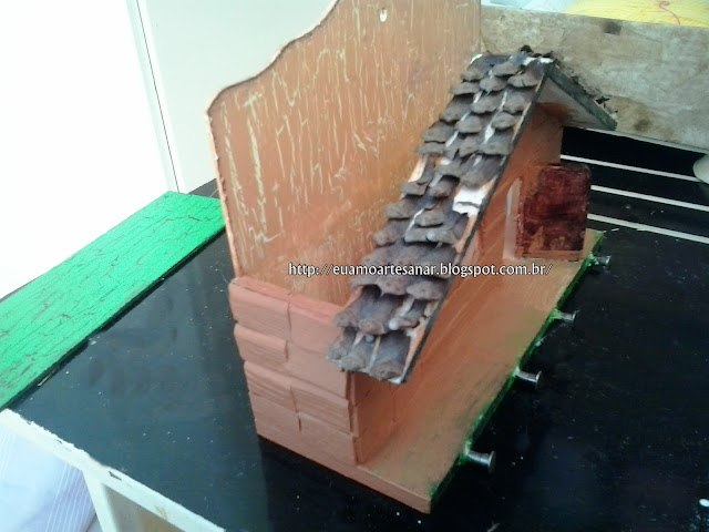 Ah.. o telhadinho eu fiz com pinha, fui arrancando os gominhos e colando na posição que você vê