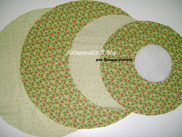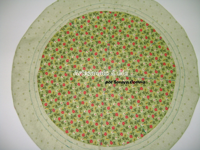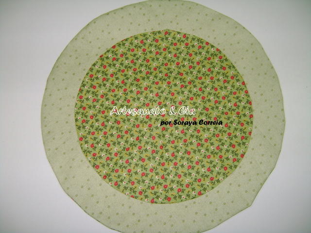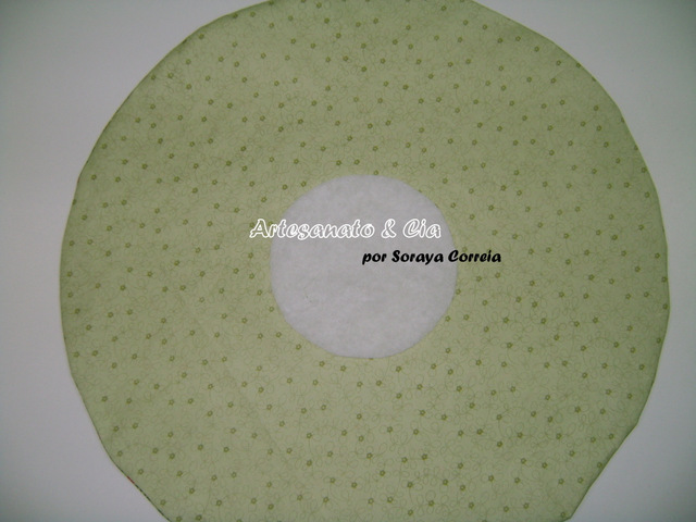 12- com molde do círculo de 12 cm, centralize sobre o círculo menor e risque com giz de costura.