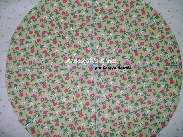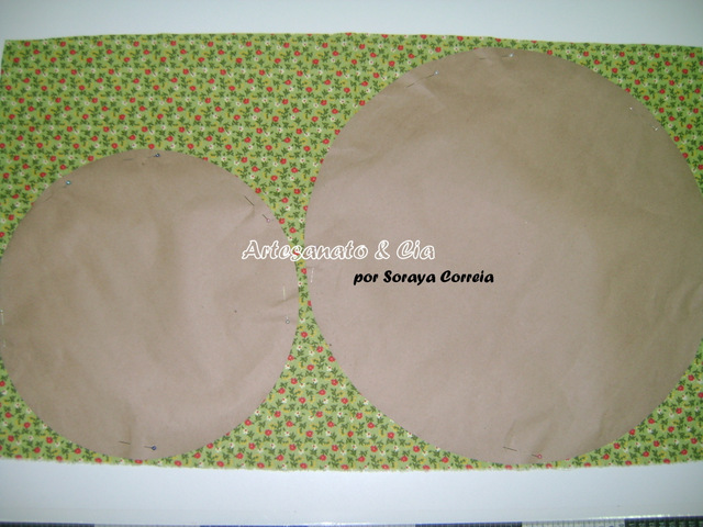 11- Junte as linhas vincadas dos dois círculos e alfinete.(essa parte a artesã esqueceu de fotografar...)
