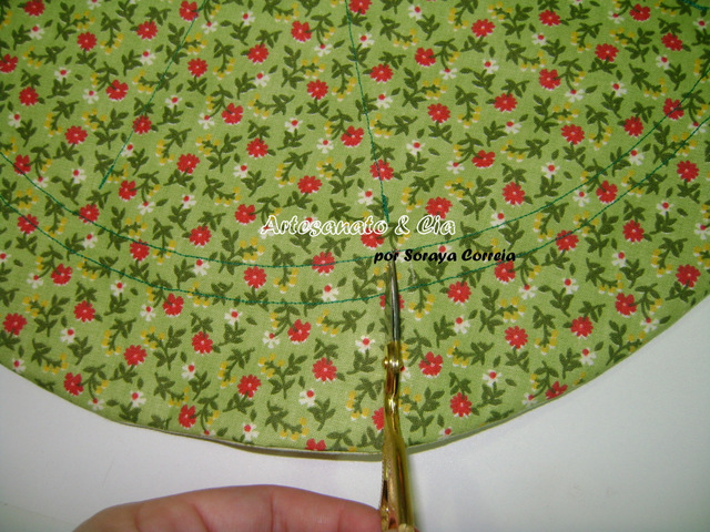 14-Depois costure o círculo menor seguindo as marcas vincadas.