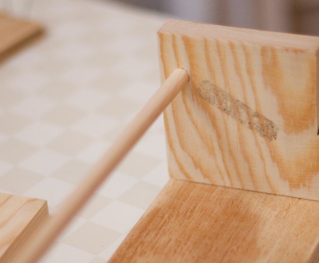 Passo 2:. Cola Colocar uma pequena quantidade de cola de madeira em cada buraco e inserir cada extremidade da bucha em uma roseta.