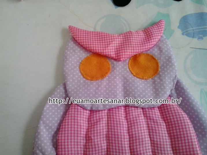Veja a figura abaixo, o corpo da coruja costurada no saco